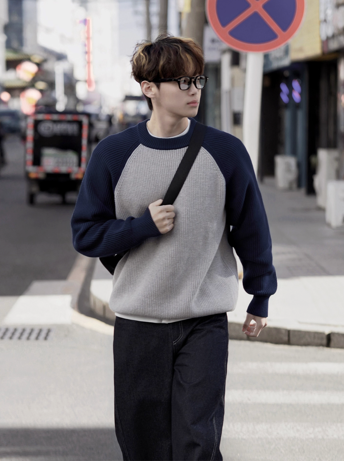 バイカラーラグランスリーブニットプルオーバー OR4803