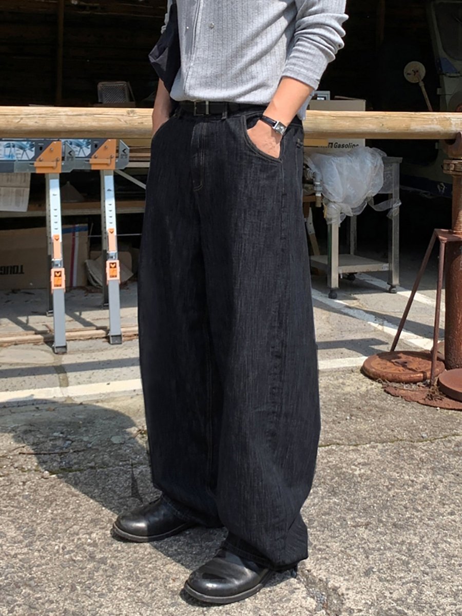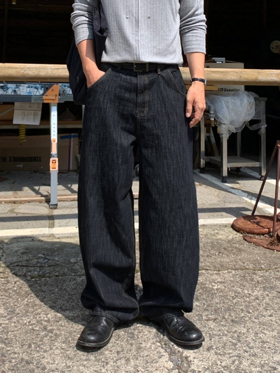 今、韓国メンズファッションで欠かせないアイテムといえばワイドデニム!ORUNが自信を持っておすすめするのが、この「ストレートワイドルーズデニムパンツ」です。