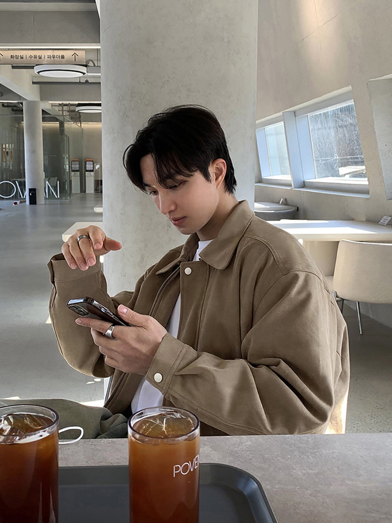 落ち着いた品格を纏う、スエードタッチのダブルジップジャケット。滑らかな起毛感が光をやわらかく受け止め、春秋の装いに静かな高級感をもたらします。無駄な装飾を削ぎ落とし、素材とシルエットで魅せる“オールドマネー”ムードの一着です。