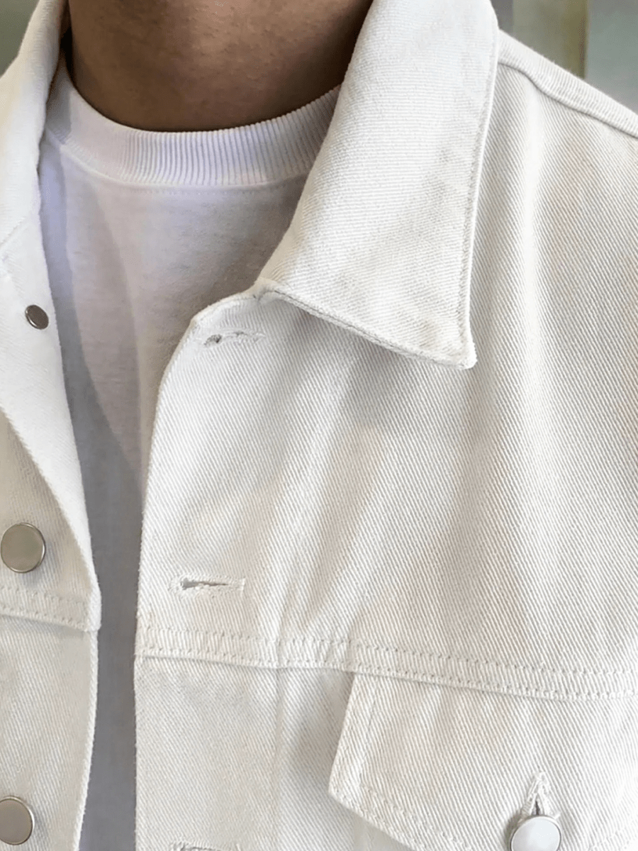 クリーンな印象を纏う、ホワイトデニムのオーバージャケット。無駄を削ぎ落としたミニマルなデザインと、軽やかなカラーリングが、春のスタイリングに抜け感と洗練された空気をもたらします。カジュアルでありながらも、どこか品のある佇まいが魅力の一着です。