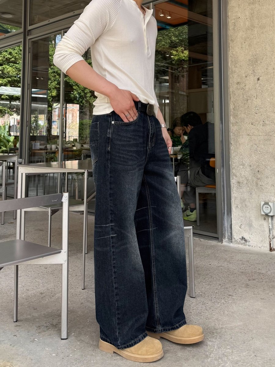 今、韓国メンズファッションで欠かせないアイテムといえばワイドデニム!ORUNが自信を持っておすすめするのが、この「ストレートワイドルーズデニムパンツ」です。