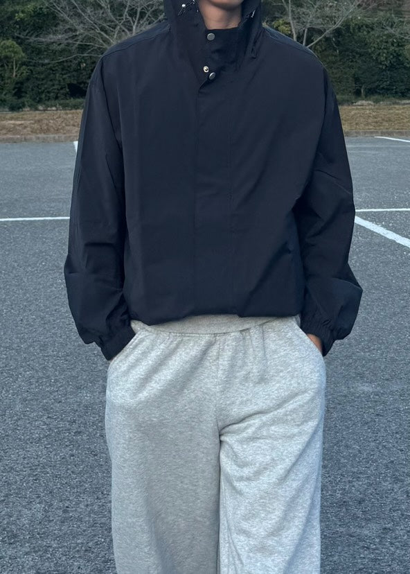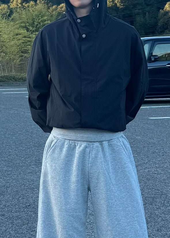 今日はゆるいスウェットパンツと合わせて、ラフなストリートスタイルに。決め手は「短×太」のシルエット。ハイネックデザインだから、ジップを上まで閉めてもクールにキマる。一枚羽織るだけで、コーデが今っぽくなる。