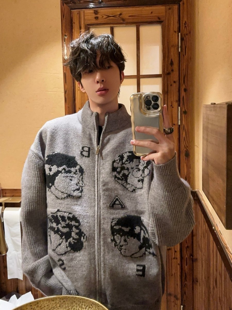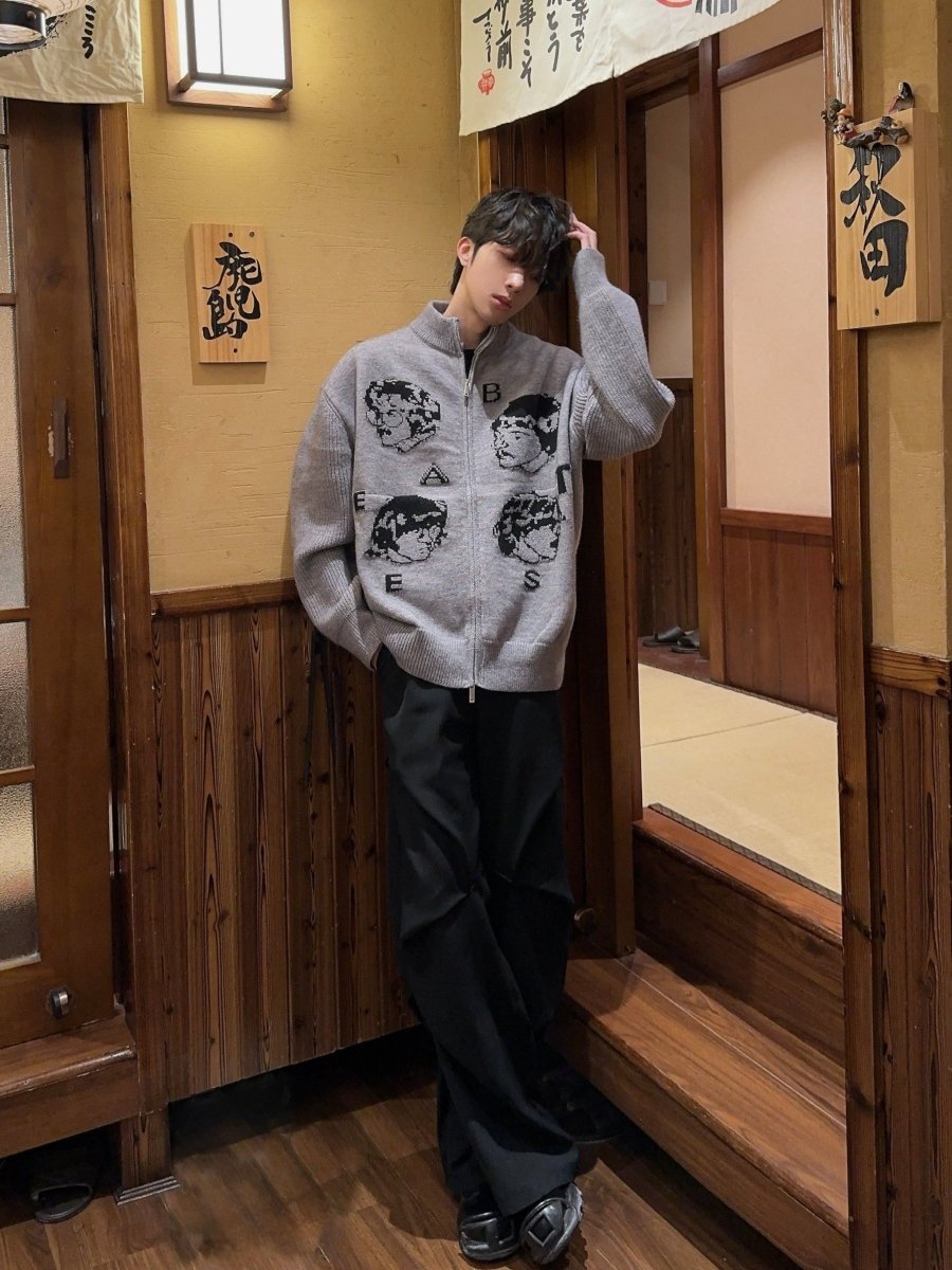 デザインの着想源は、90年代のヨーロッパ・アートニットとストリートカルチャーの交差点。どこか退廃的で、それでいて知性を感じさせる表情が、“復古×高级感”というキーワードを自然に体現します。アルファベットを散らした構成も、グラフィックとしての完成度を高めるアクセントに。