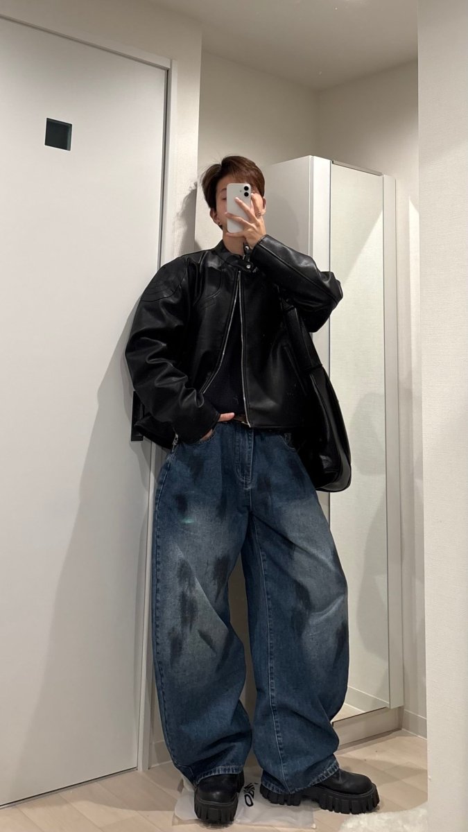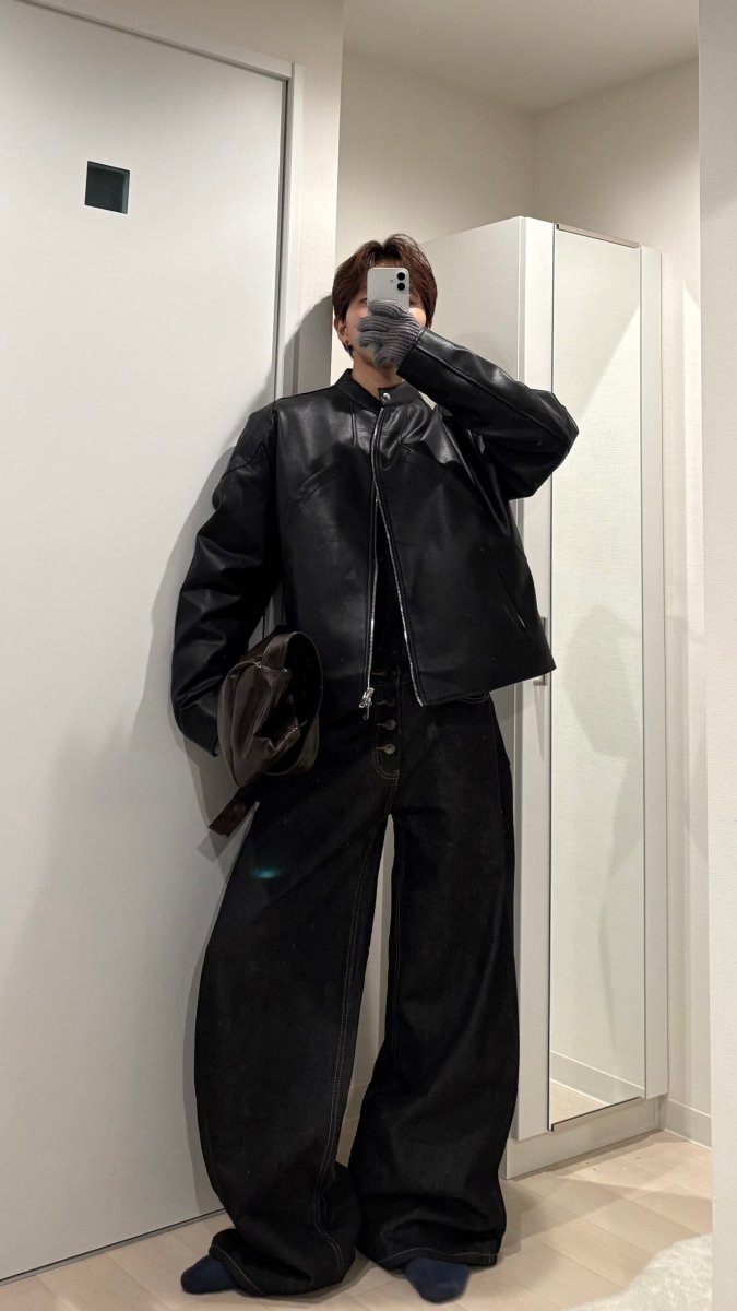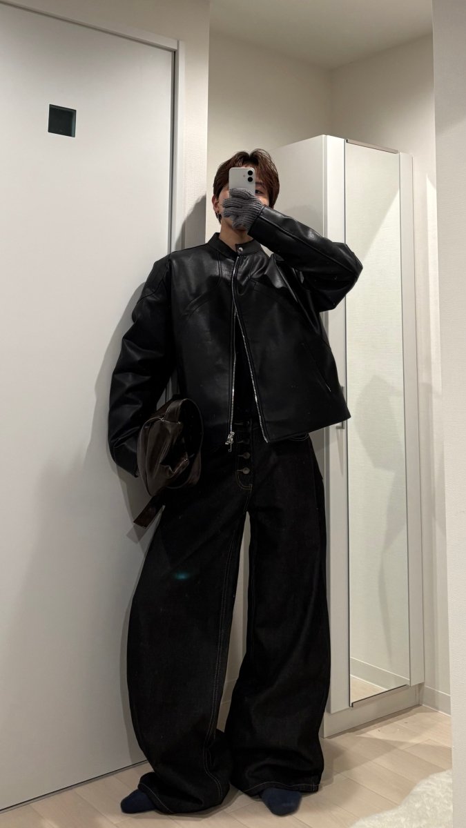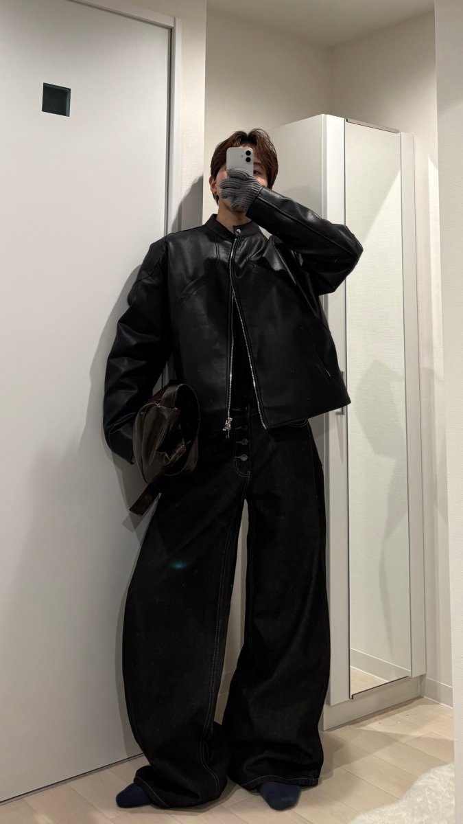 シルエットは今っぽいルーズフィット。インナーにニットやスウェットを合わせても余裕があり、長いシーズン活躍します。僕はワイドデニムと合わせて、少し力の抜けた“かっこいい”なスタイルで着るのがおすすめ。正直、クローゼットにあると頼りになる、大人のためのレザージャケットです。