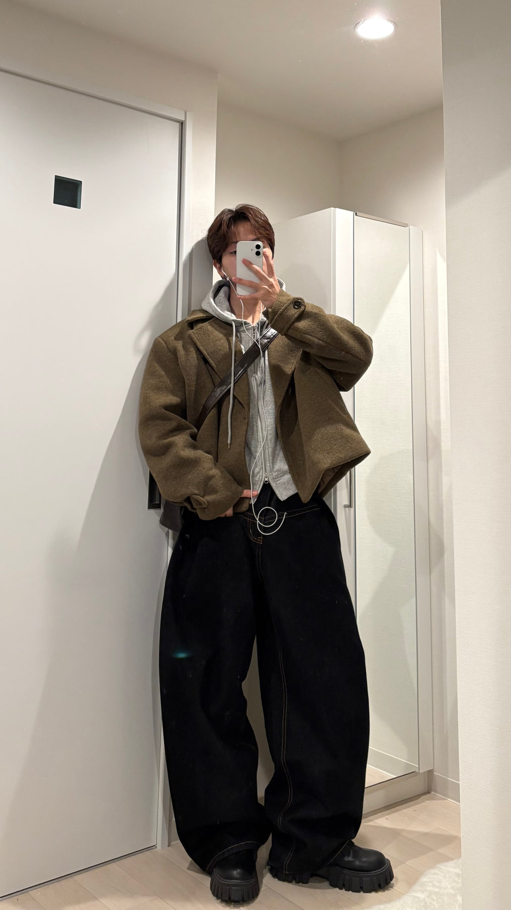 個人的には、短丈アウターやミニマルなニットと合わせるのがおすすめ。デザインは効いているのに主張しすぎないので、通勤後の街着にも自然にハマります。