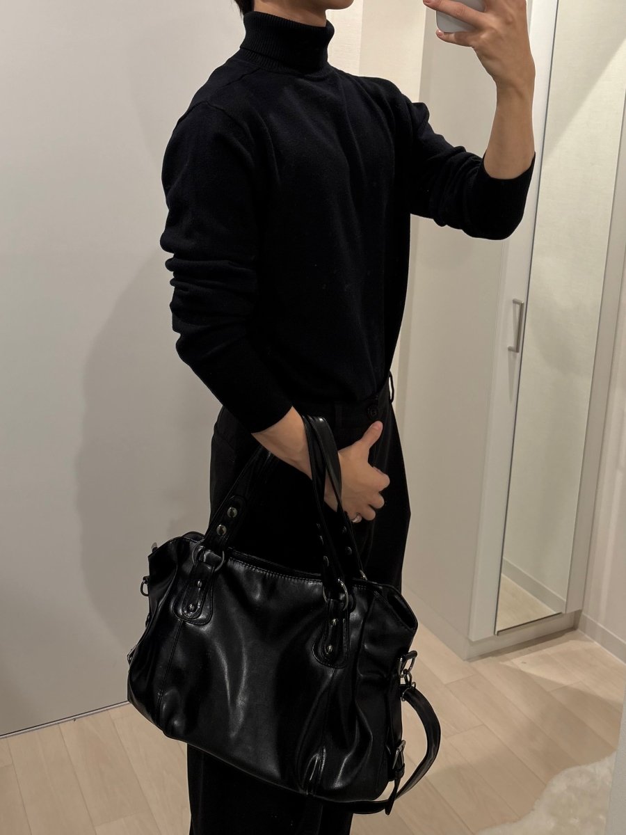 肩掛け・斜め掛け・手持ちと使い方も自由度が高く、男女問わずスタイリングに取り入れやすいのも魅力。僕はオールブラックのコーデに合わせて、少しモード寄りに使うのが好きですね。