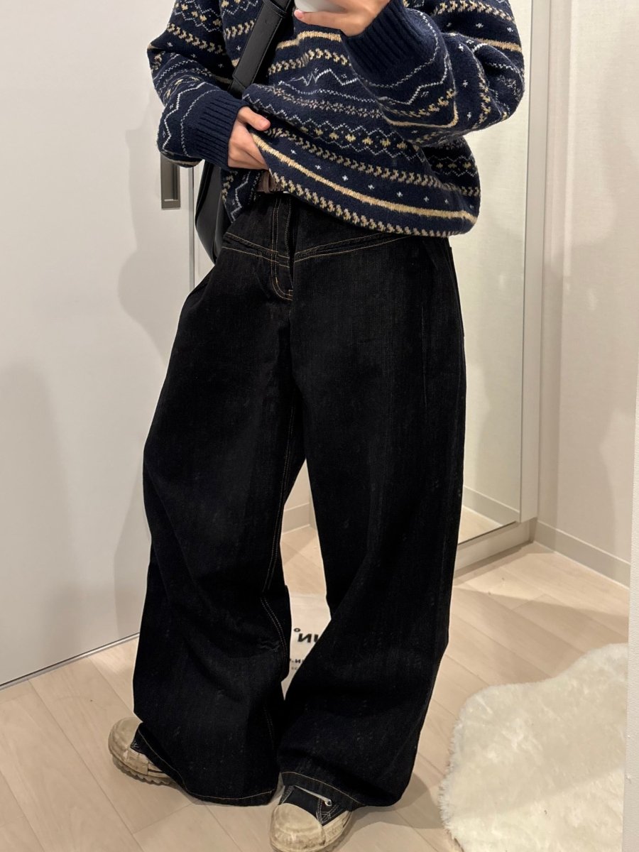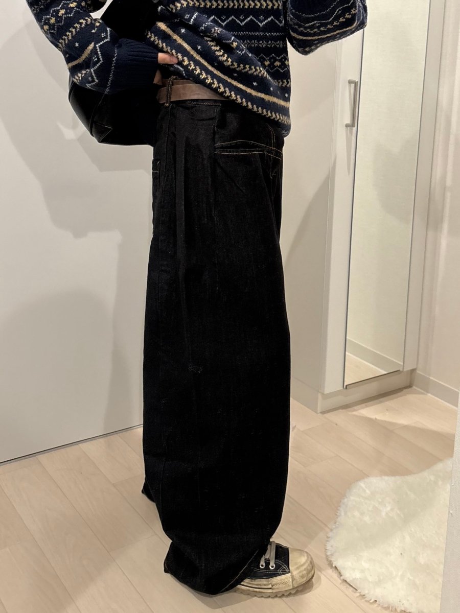 今、韓国メンズファッションで欠かせないアイテムといえばワイドデニム!ORUNが自信を持っておすすめするのが、この「ストレートワイドルーズデニムパンツ」です。