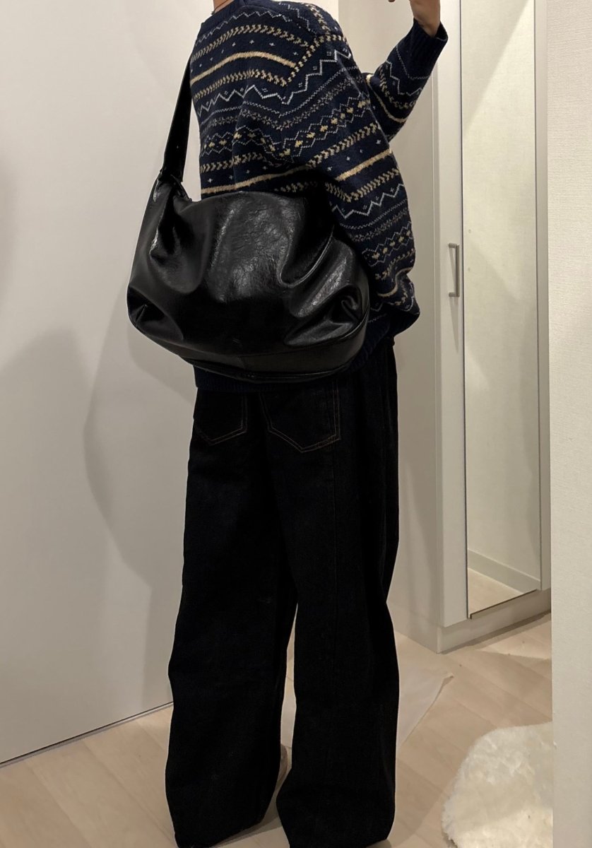 個人的には、短丈アウターやミニマルなニットと合わせるのがおすすめ。デザインは効いているのに主張しすぎないので、通勤後の街着にも自然にハマります。