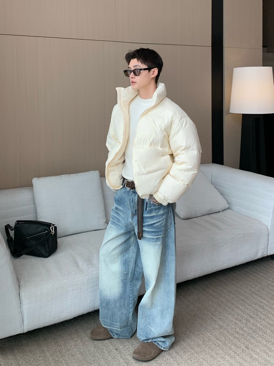 今、韓国メンズファッションで欠かせないアイテムといえばワイドデニム!ORUNが自信を持っておすすめするのが、この「ストレートワイドルーズデニムパンツ」です。