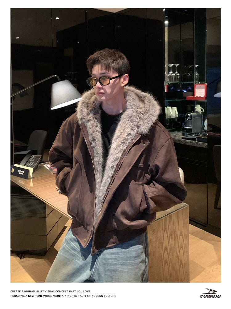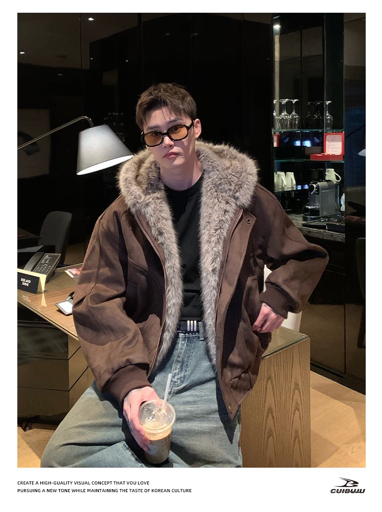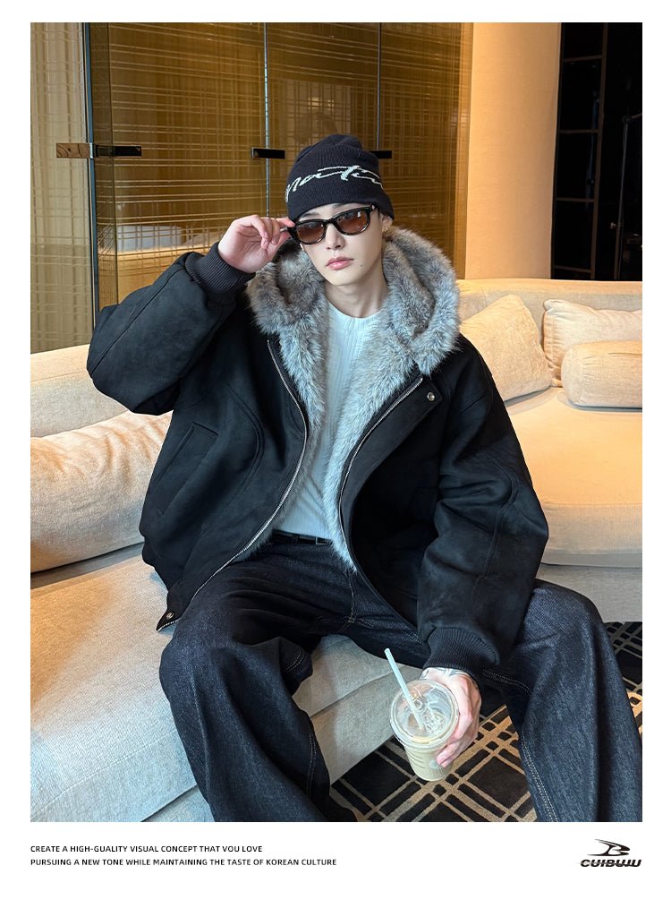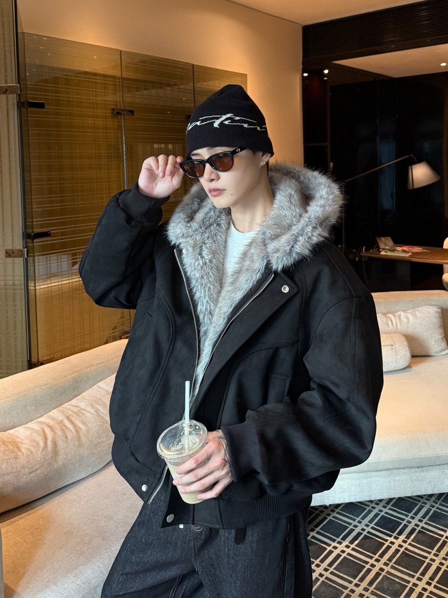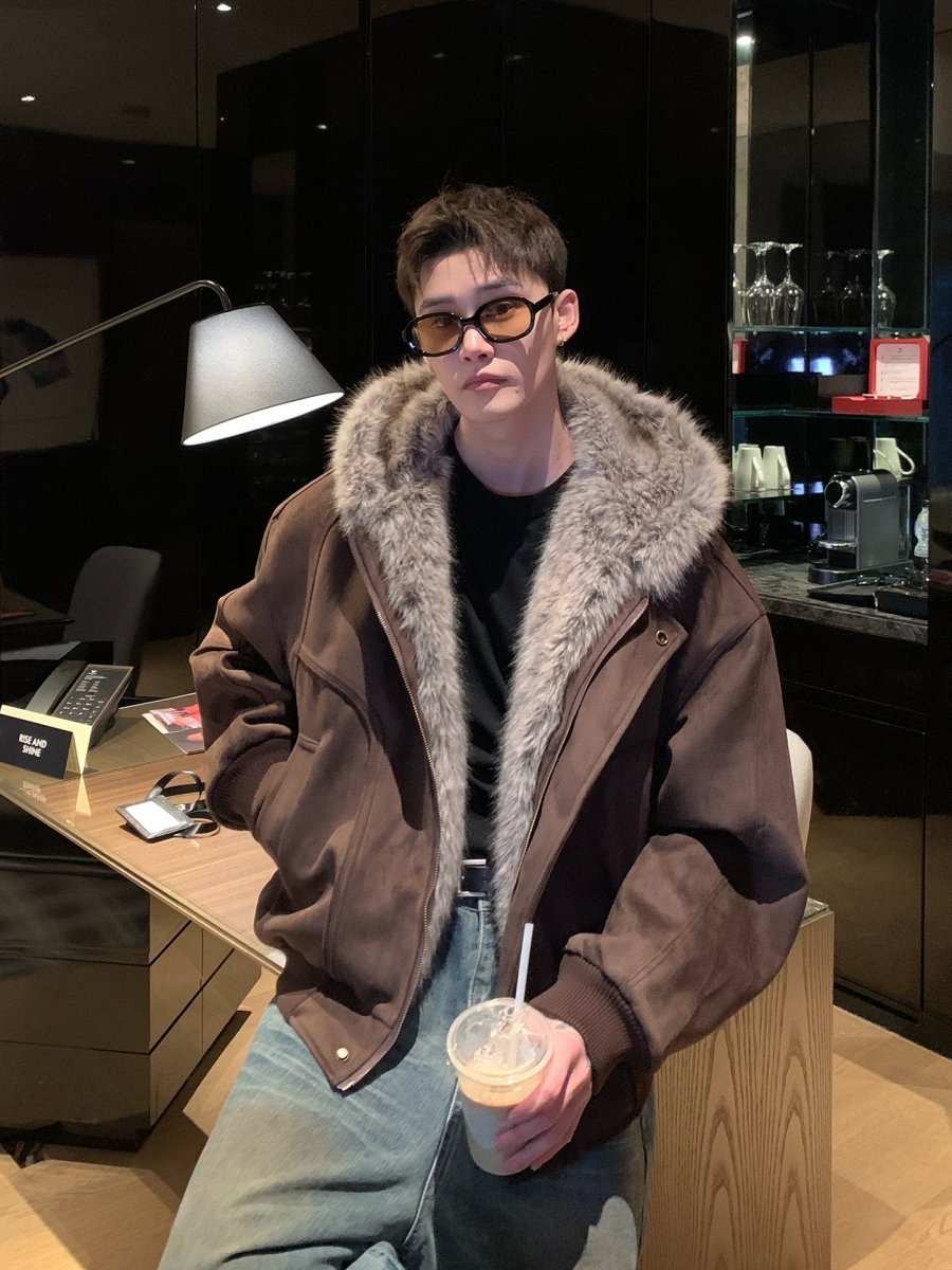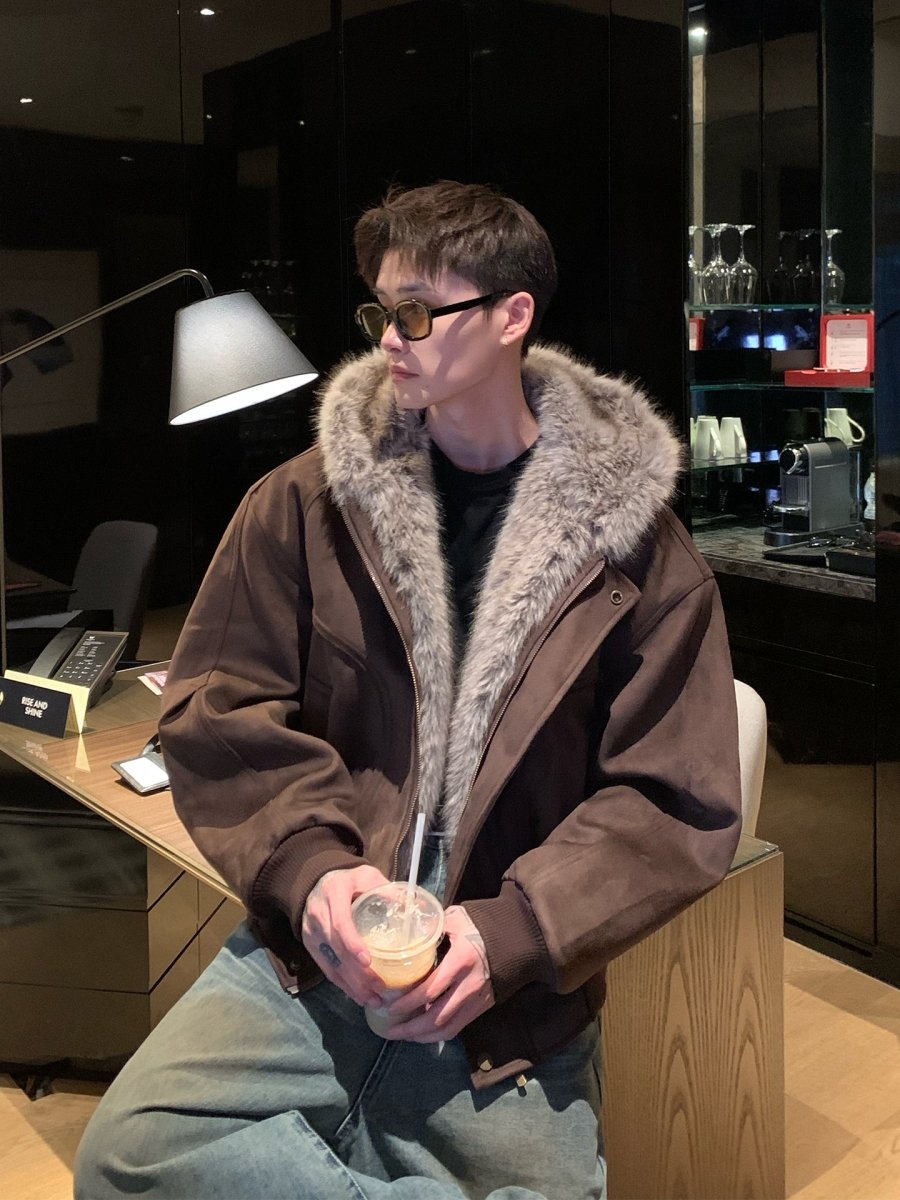フェイクスエードボアフードエアリーコート OR4859 - 韓国メンズファッション通販 - ORUN -
