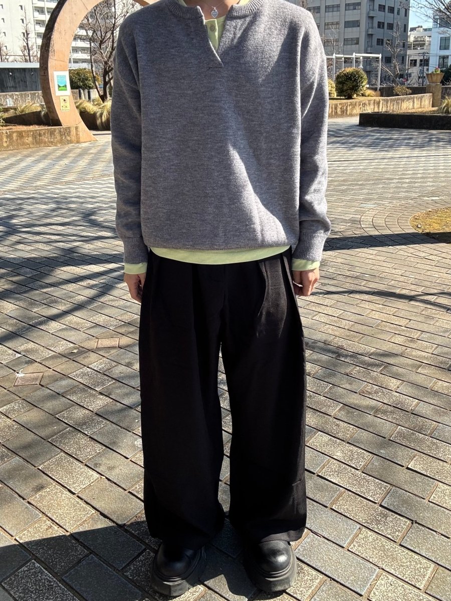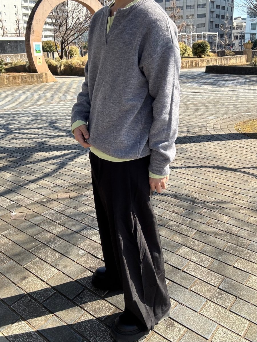 素材は軽さがありながら、安っぽく見えない落ち感。歩くたびに揺れるラインがきれいで、足元にボリュームのあるシューズを合わせると、シルエットがより引き立ちます。トップスはニットでもスウェットでも、考えずに合わせて大丈夫。
