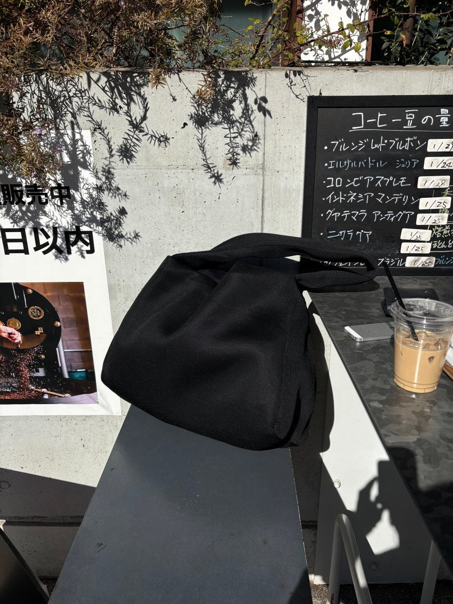軽量なメッシュ素材を使ったシンプルなトート型で、肩に掛けたときのストレスがほとんどないのが特徴。荷物を入れても自然に身体に沿ってくれるから、持っている感覚がすごくラクなんです。見た目はミニマルだけど、容量はしっかり。ノートPCやボトル、上着まで余裕で入ります。