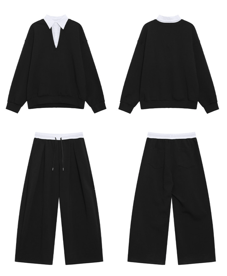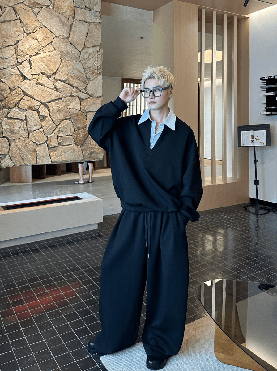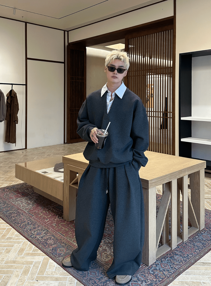 レイヤードVネックスウェットセットアップ OR4904 - 韓国メンズファッション通販 - ORUN -