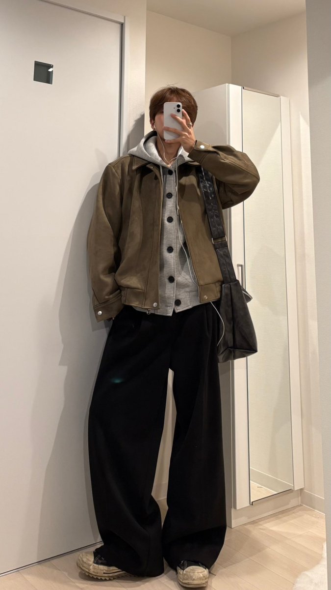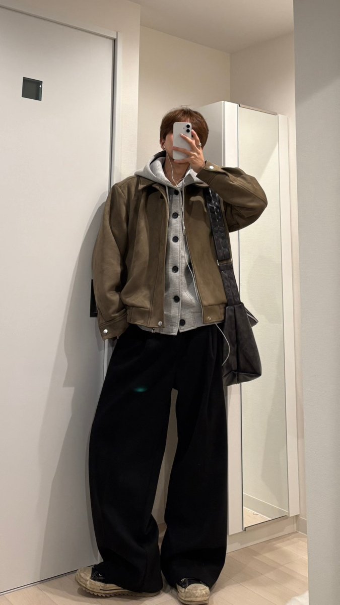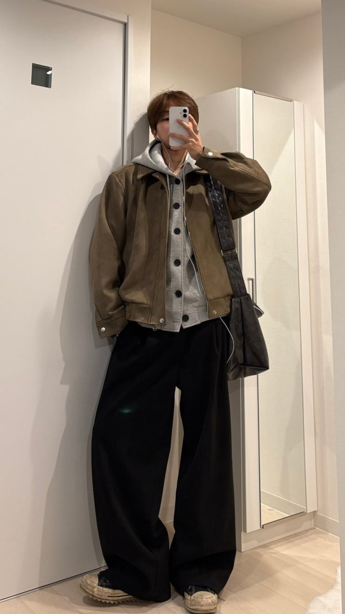 上品なスエードタッチ素材に、ダブルジップのディテールを合わせた大人っぽいショートブルゾン。派手な装飾はないのに、どこか品のある佇まいで、今人気の“老钱”ムードを自然に取り入れられる一着です。