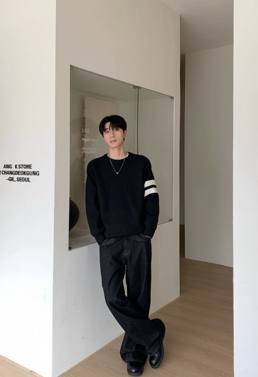 ラインスリーブミニマルクルーニット OR4727 - 韓国メンズファッション通販 - ORUN -